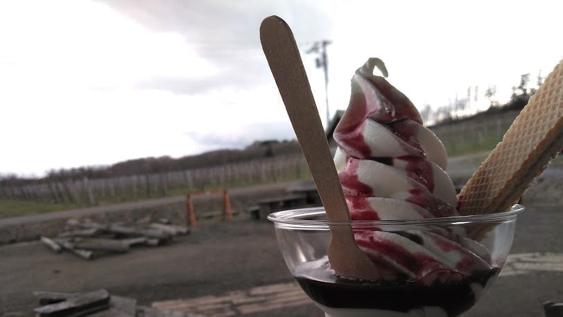 直売所の外の建物では、ソフトクリームも販売しています。営業期間は4月下旬から11月上旬と、ちょうどぶどうの生育期間と同じくらい。冬期間は休業していますが、春にはまた再開します。