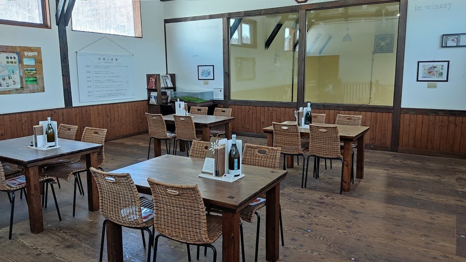 また、醸造所のちょうど反対側にはぶどう畑が一望できるスペースがあり、四季折々のぶどう畑や宝水町の田園風景を見ることができます。